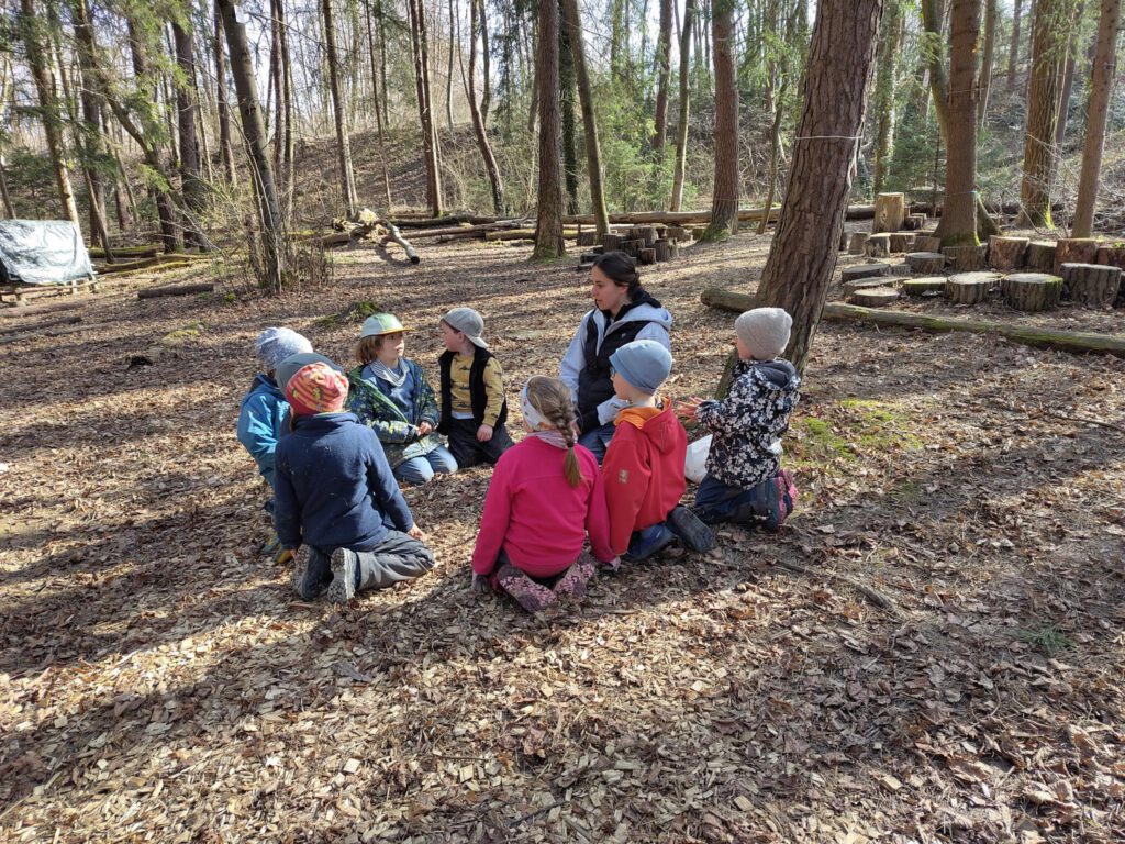 Der Alltag im Waldkindergarten unterscheidet sich deutlich von dem Alltag in einem Hauskindergarten. Ein Waldkindergarten bedeutet jeden Tag, bei jedem Wetter draußen in der Natur zu sein. Unser „Gruppenraum“ ist der Wald selbst: hohe Bäume, moosbedeckter Boden und wechselnde Plätze, die je nach Wetter und Jahreszeit ausgesucht werden. Jeden Morgen treffen wir uns an einem festen Treffpunkt, von dem aus wir gemeinsam in den Tag aufbrechen.